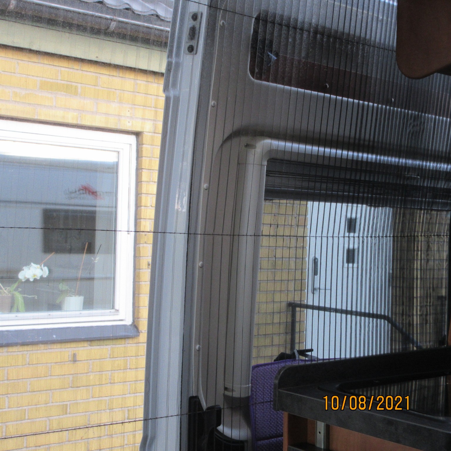 Gjorde myggnätet lite fräschare bort med fett från stekning i bilen. Gick bra med Cillit BANG och mycket bättre gick det när vi fick något stadigt att hålla emot med när man torkade.